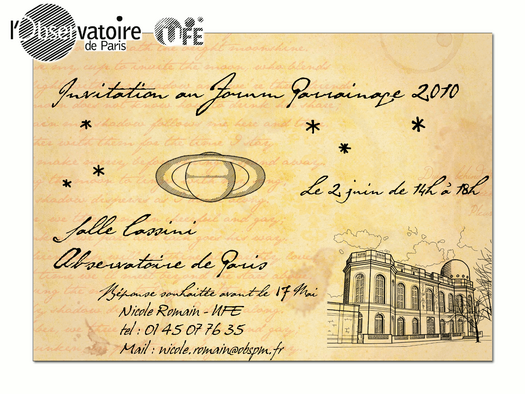 Le forum parrainage 2010 s’est tenu le mercredi 2 Juin à l’Observatoire de Paris. Il a réuni une centaine de participants : des enseignants et des astronomes. Cette manifestation a permis de présenter le dispositif des parrainages, les nombreuses ressources pédagogiques disponibles et d’échanger les expériences des uns et des autres sur la diffusion de l’Astronomie dans les classes...