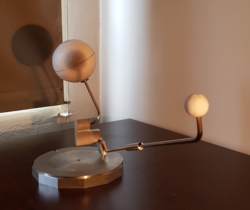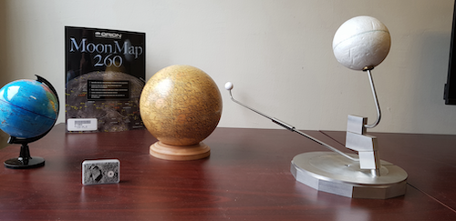 À l’aide de diverses maquettes (globe lunaire, maquette Terre - Lune), l’objectif est que les élèves puissent visualiser concrètement le mouvement des objets et donc les interactions qu’elles soient gravitationnelles ou dues à des occultations.