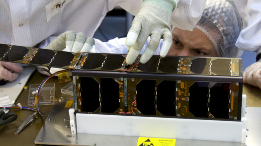 Intégration du nanosatellite PicSat au LESIA/Observatoire de Paris PSL avant son lancement en janvier 2018 (Photo Maarten Roos - LESIA/Observatoire de Paris-PSL)